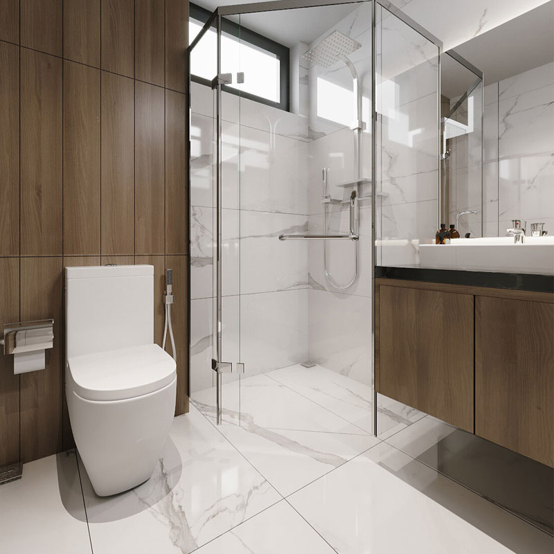 Tối ưu hóa không gian: Chọn các loại thiết bị và vật liệu có kích thước nhỏ gọn và đa năng để tận dụng tối đa diện tích có sẵn. Ví dụ, bạn có thể sử dụng bồn cầu 2 khối thay vì bồn cầu 1 khối, vì thiết kế nhỏ gọn của nó không chỉ tiết kiệm không gian mà còn mang lại tính tiện dụng cao khi sử dụng, tương tự vậy một số thiết bị vệ sinh phù hợp là bồn cầu treo tường, bồn tắm đứng, sen tắm âm tường, chậu rửa góc, chậu rửa đặt bàn,...