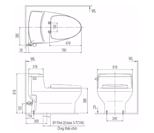 Bản vẽ kỹ thuật của bồn cầu 1 khối INAX AC-4005VN