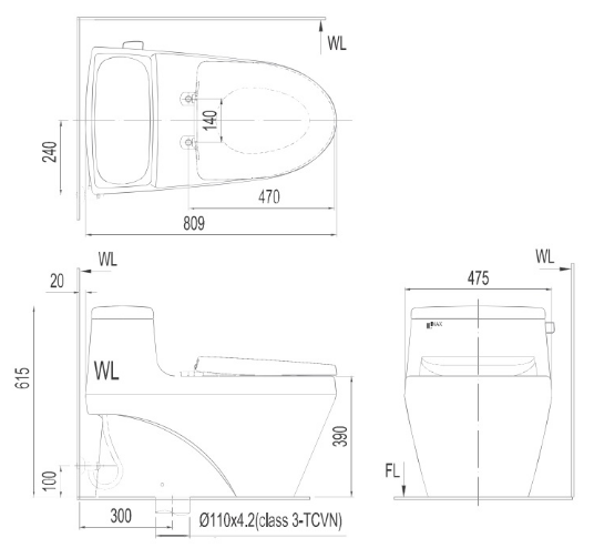 Bản vẽ kỹ thuật của bồn cầu 1 khối INAX AC-1035VN