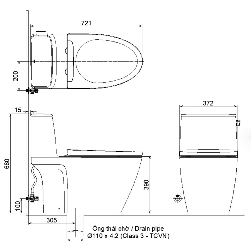 | Công nghệ | Aqua Ceramic Tiết kiệm nước Xả Powerful Votex Thiết kế trơn láng Vành kín Rimless |