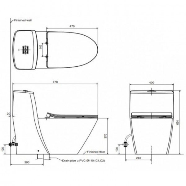 Bản vẽ kỹ thuật của bệt vệ sinh INAX AC-919VRN (AC 919 VRN)