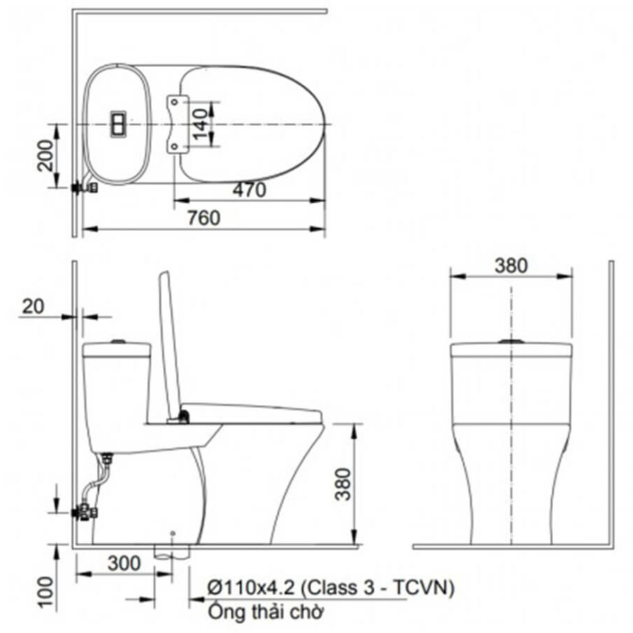 • Bồn cầu 1 khối AC-959VAN là chiếc bồn cầu có chiều dài lớn nhất với 760mm nhưng bù lại chiều ngang thấp nhất chỉ 380mm, vậy nên khách hàng có thể cân nhắc hướng đặt bồn cầu để thuận tiện nhất cho việc sử dụng, cũng như là tiết kiệm không gian phòng vệ sinh