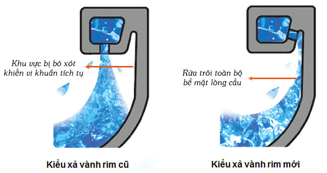 • Kỹ thuật xả rửa vành rim, tăng sức mạnh xả rửa