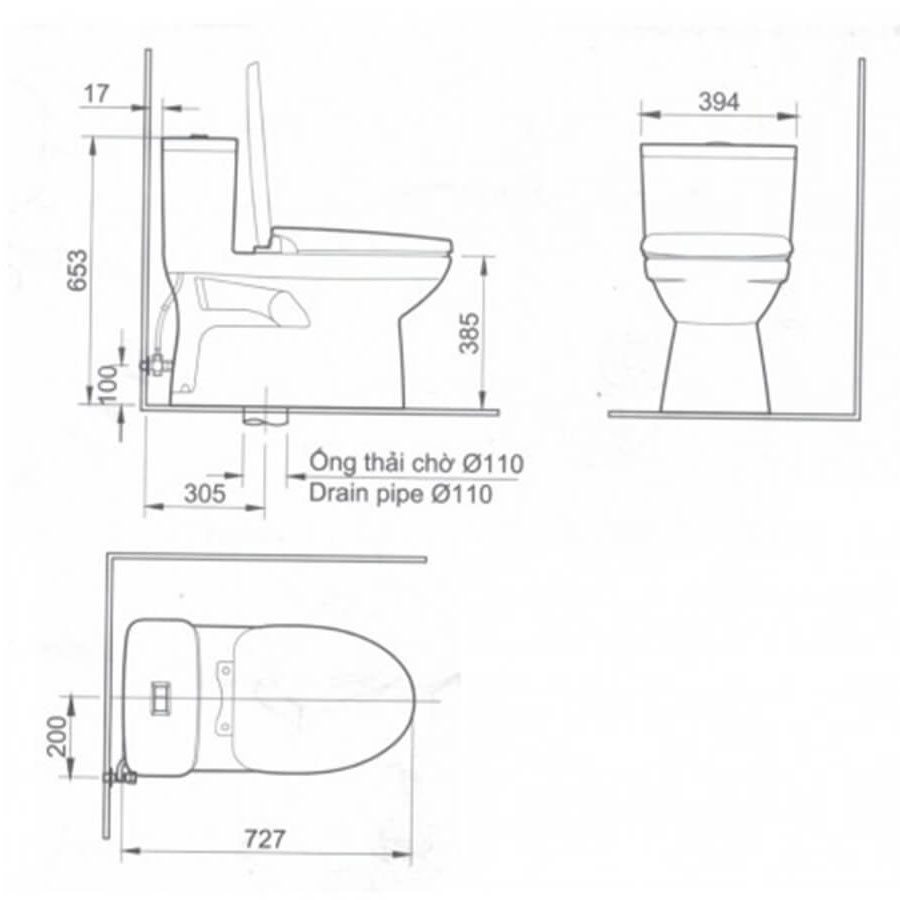 Bản vẽ kỹ thuật bàn cầu INAX AC-969VN