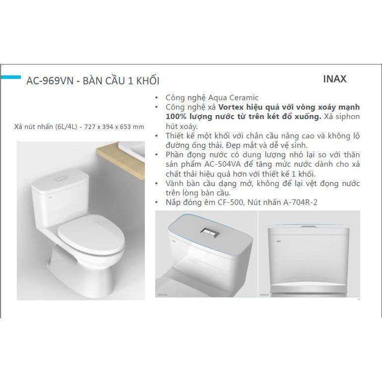 Thông tin chi tiết bồn cầu INAX 1 khối AC-969VN – Nắp đóng êm