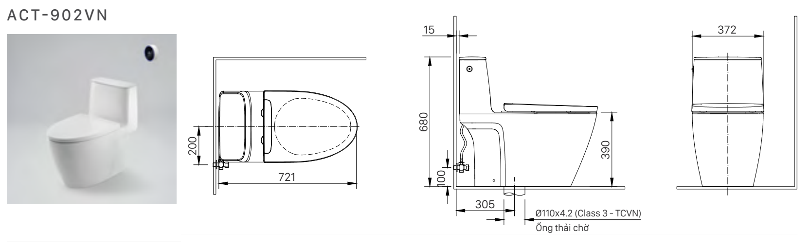 | Công nghệ | Vành kín Rimless Xả cảm ứng Thiết kế trơn láng Xả Powerful Votex Tiết kiệm nước Aqua Ceramic |
