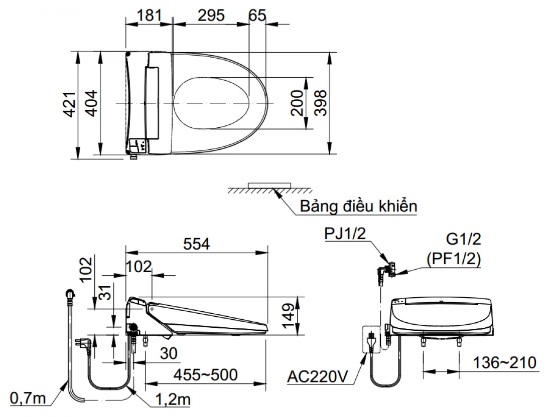 | Tính năng nắp rửa | Sưởi ấm bệ ngồi Vòi tự rửa Vòi phun kép Tự vệ sinh đầu vòi Khử mùi Sấy khô Làm sạch đầu phun Kháng khuẩn Nắp đóng êm Tự động tiết kiệm điện Bảng điều khiển không dây Rửa vệ sinh (rửa trước, sau, sau nhẹ) |