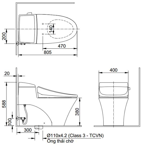 - Tâm thoát: 300mm (+-5)