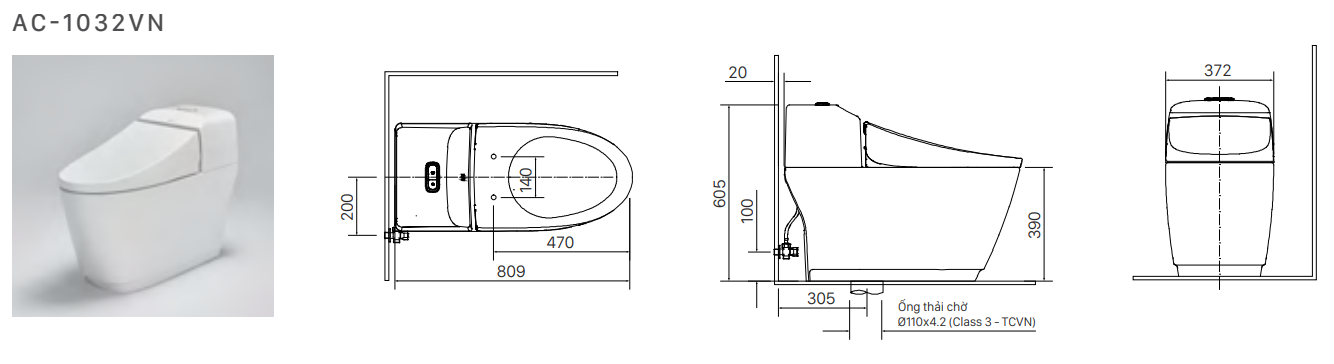 Thông tin của bồn cầu thông minh INAX AC-1032+CW-H20VN/BW1: