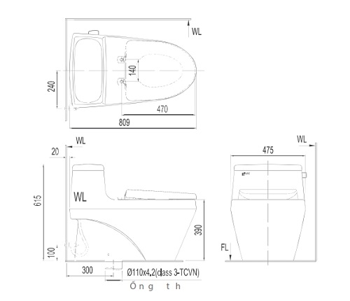 - Bồn cầu xả gạt, tiện lợi và dễ sử dụng với mức xả 5.5L