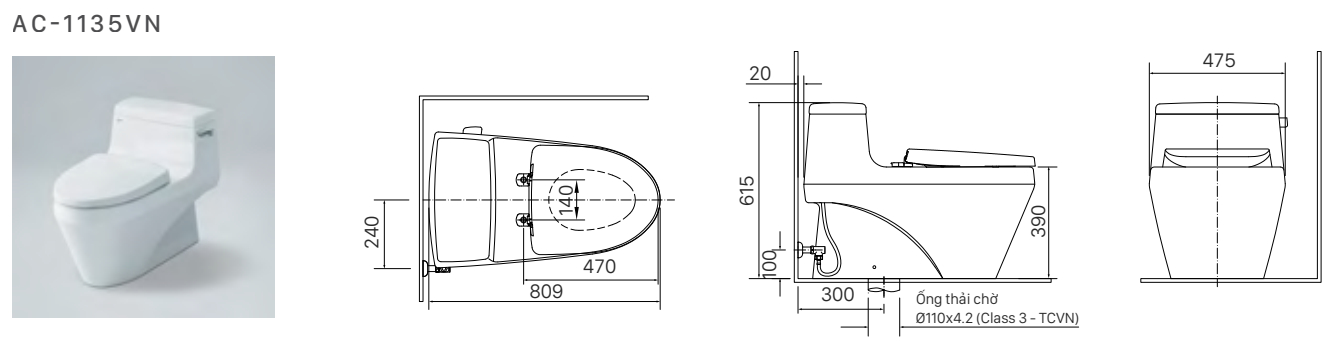 Thông tin sản phẩm bồn cầu 1 khối nắp điện tử INAX AC-1135+CW-KA22AVN