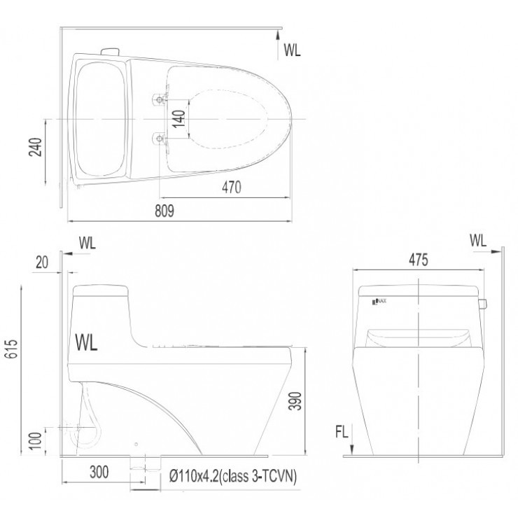 | Kích thước (DxRxC) | 809x475x615 mm |
