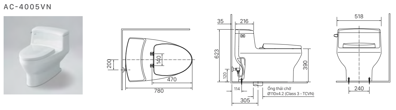 Thông tin sản phẩm bồn cầu 1 khối nắp điện tử INAX AC-4005+CW-H18VN