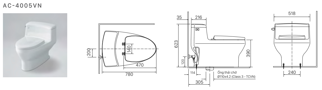 Bồn cầu AC-4005 với các ưu điểm: