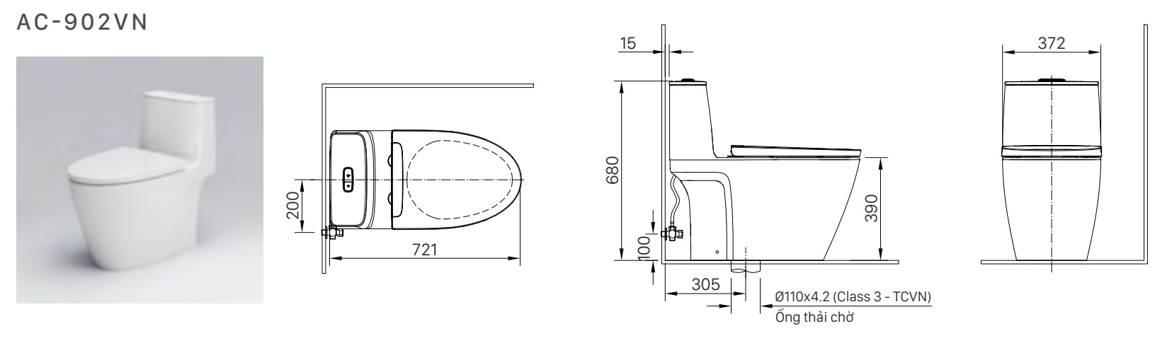 | Công nghệ | Vành kín Rimless Thiết kế trơn láng Xả Powerful Votex Tiết kiệm nước Aqua Ceramic |