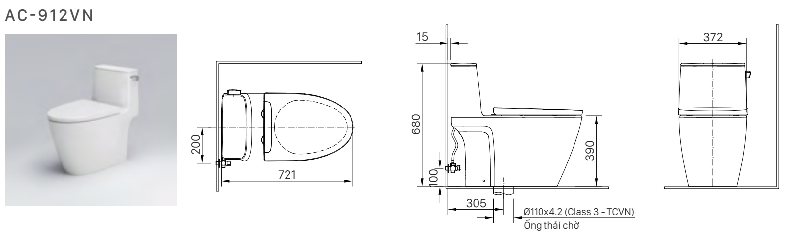 | Công nghệ | Vành kín Rimless Thiết kế trơn láng Xả Powerful Votex Tiết kiệm nước Aqua Ceramic |