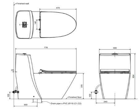 - Thiết kế liền khối giữa két nước và bệ ngồi, tạo sự chắc chắn và hiện đại