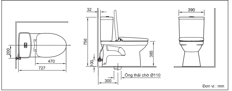 - Kích thước 727 x 390 x 756 mm được cho là vừa phải, có thể kết hợp với nhiều không gian nhà tắm có diện tích vừa và nhỏ khác nhau