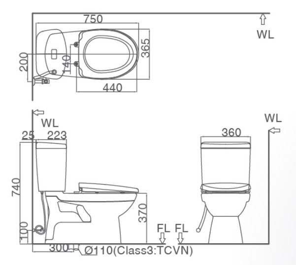 Bản vẽ kỹ thuật của bàn cầu INAX 2 khối AC-504VWN