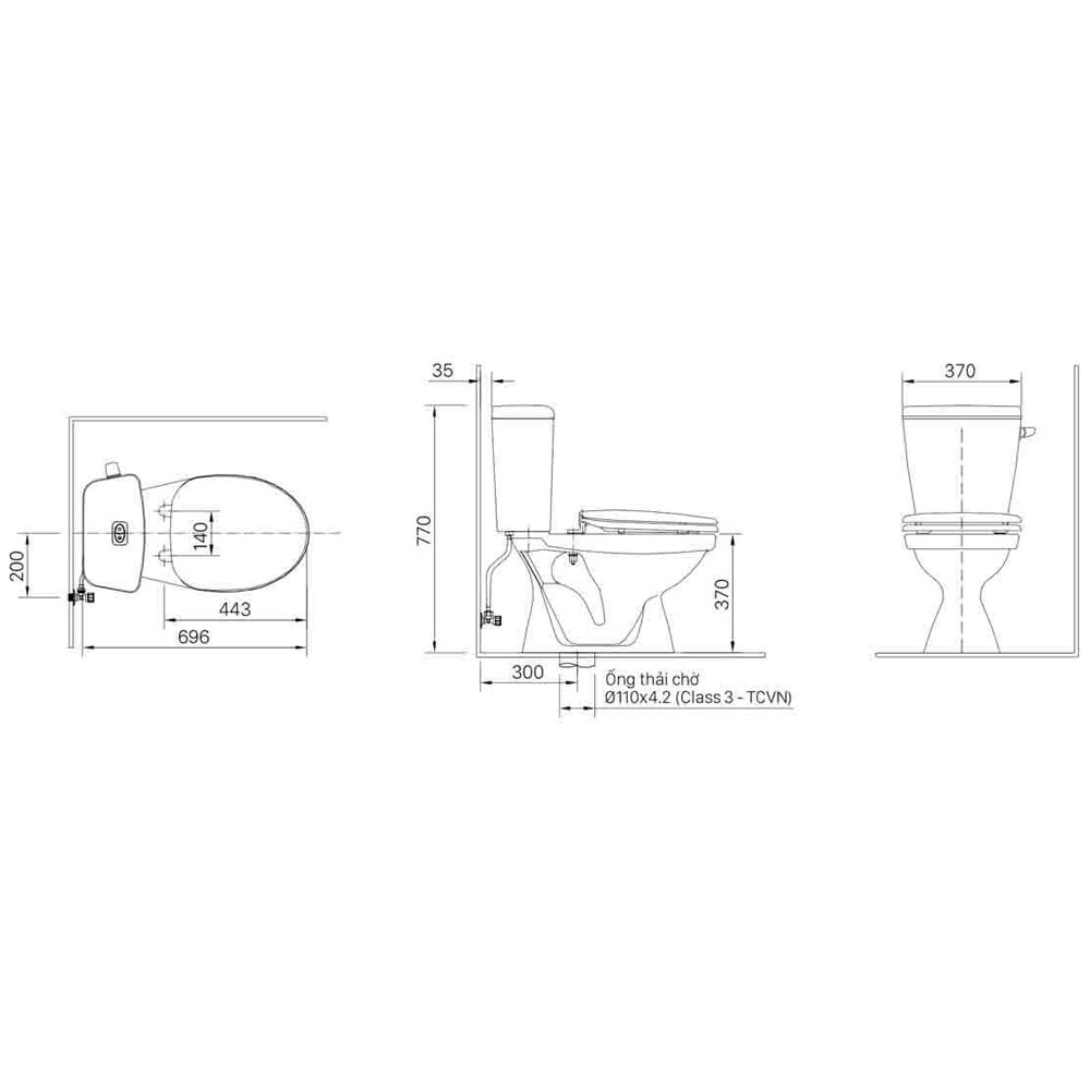 Bản vẽ kỹ thuật của bàn cầu INAX 2 khối C-117VA