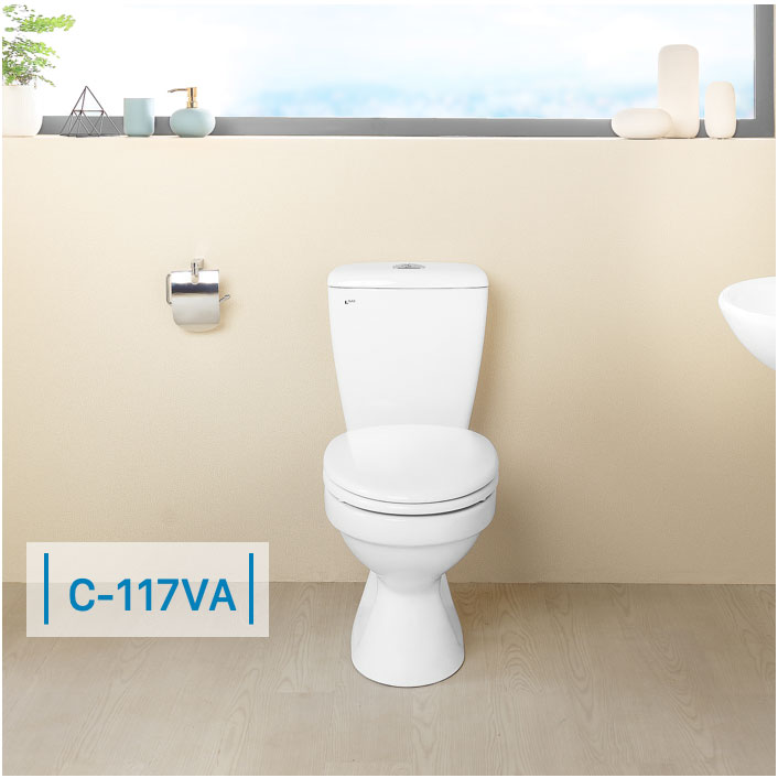 • Bồn cầu INAX 2 khối C-117VA có thiết kế thân cầu 2 khối phổ biến, đơn giản và cực nhỏ gọn phù hợp nhà vệ sinh nhỏ và vừa.