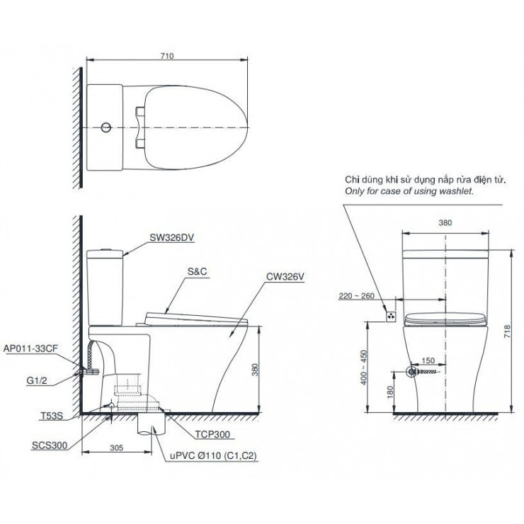 Bản vẽ kỹ thuật bồn cầu 2 khối TOTO nắp êm CS326DT10