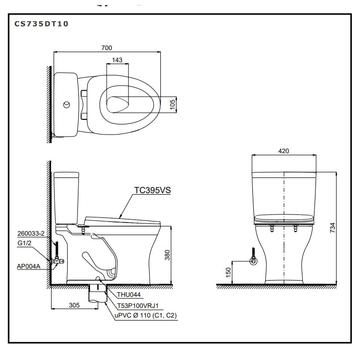 Thông tin của bồn cầu 2 khối TOTO CS735DT10#XW: