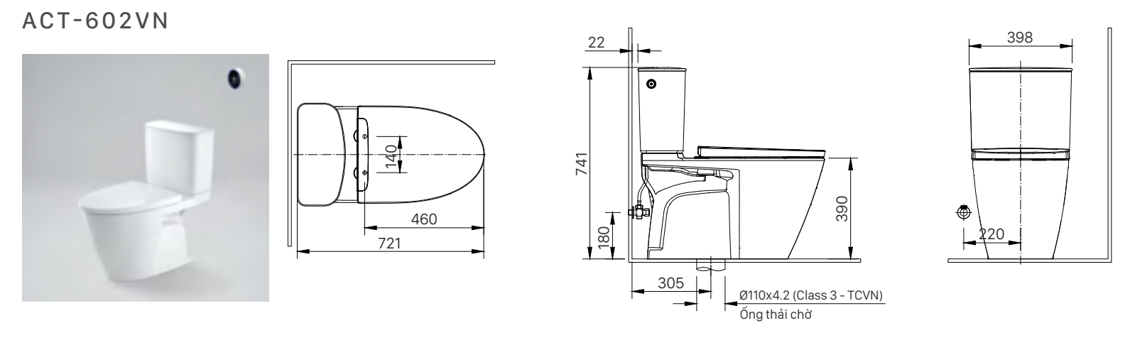 Thông tin sản phẩm bồn cầu 2 khối xả cảm ứng nắp rửa cơ INAX ACT-602+CW-S15VN