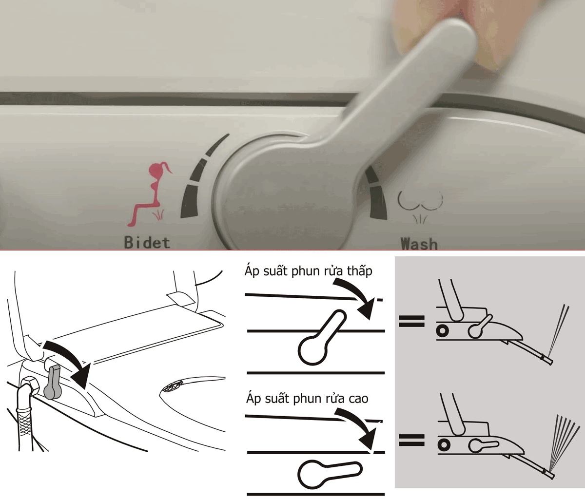 - Tay gạt điều chỉnh với 2 chế độ rửa trước & sau