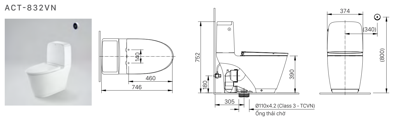 Bồn cầu ACT-832 với các ưu điểm: