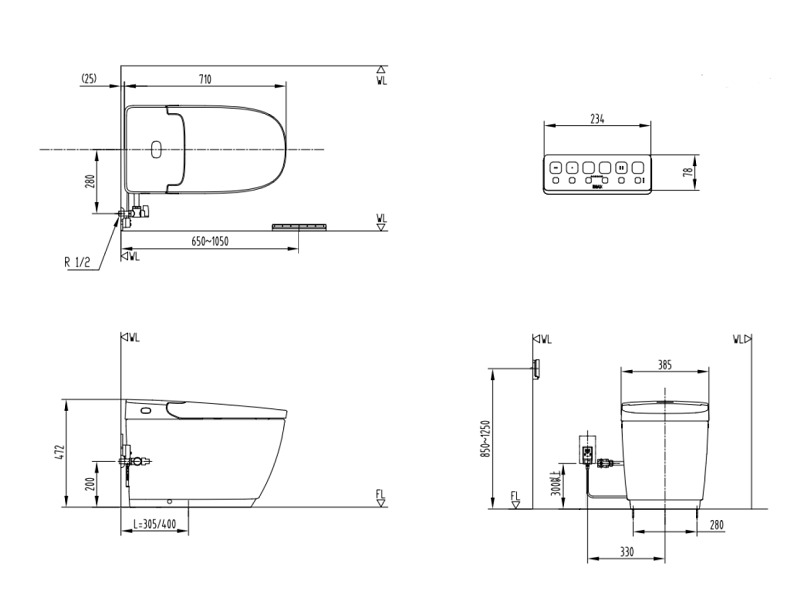 Bản vẽ kỹ thuật bồn cầu INAX Saras Auto Open AC-819VN
