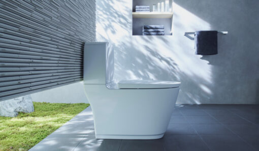 - Thiết kế bồn cầu 2 khối, thân & két nước liền mạch tinh tế, tạo nên tổng thể gọn gàng, sang trọng hài hòa cho không gain