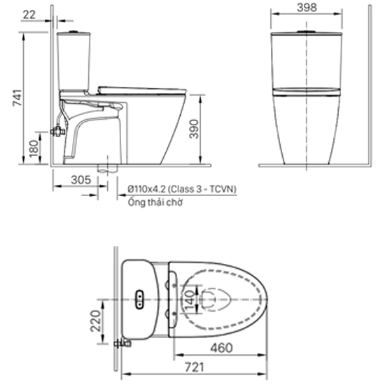 | Công nghệ | Vành kín Rimless Xả cảm ứng Xả Powerful Votex Tiết kiệm nước Aqua Ceramic |