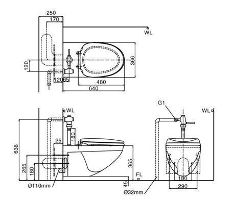 - Vệ sinh tối ưu với hai vòi phun rửa riêng biệt