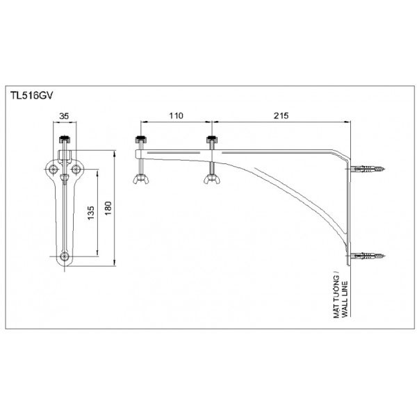 Bản vẽ kích thước giá đỡ lavabo TOTO TL516GV