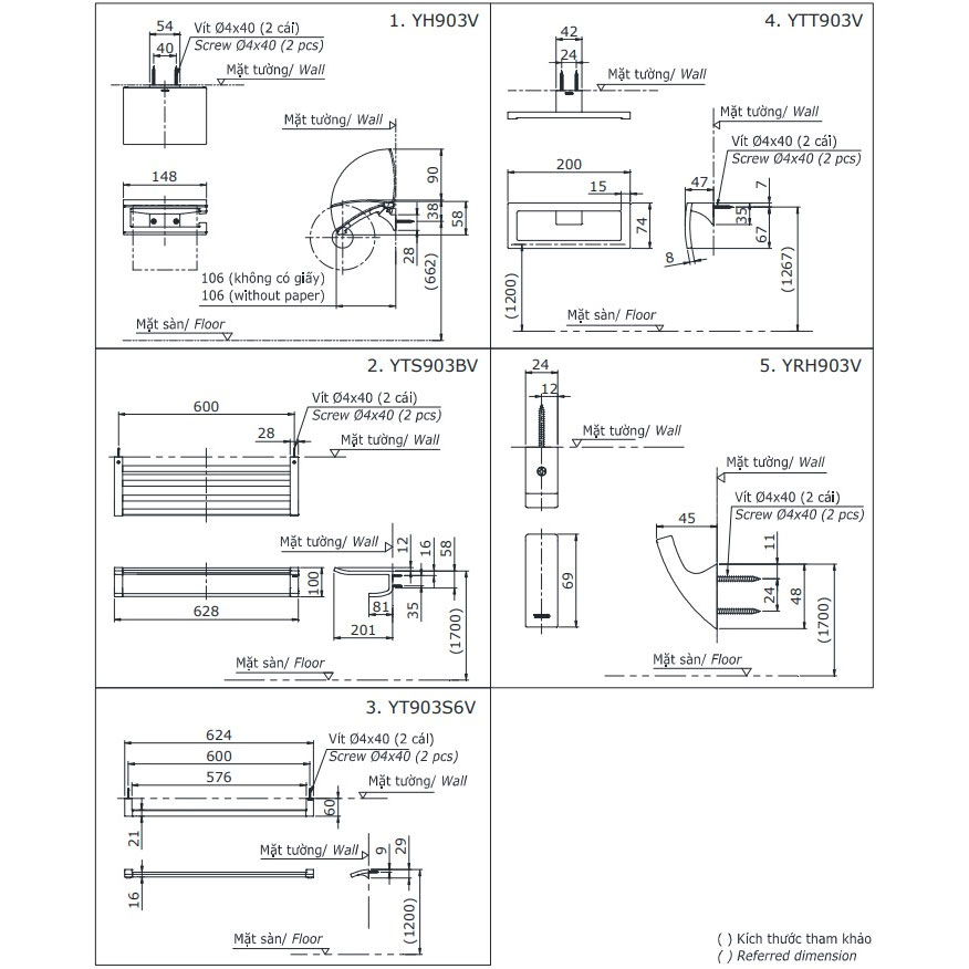 Thông tin sản phẩm bộ phụ kiện TOTO YS903N5V 5 món