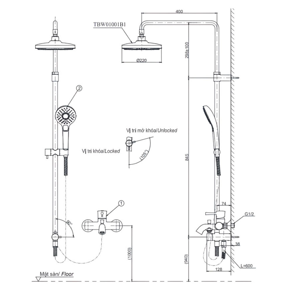Thông tin của bộ sen cây tắm đứng TOTO TBW01001BA/TBS04302V/TBW03002B: