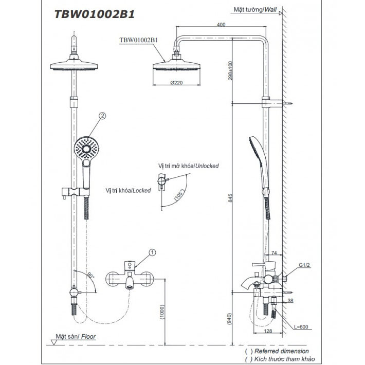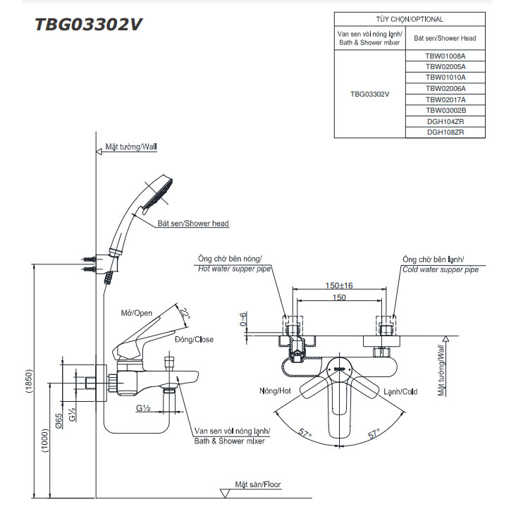 Thông tin của bộ sen cây tắm đứng TOTO TBW01002BA/TBG03302VA/TBW01010A: