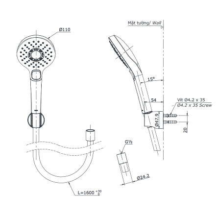 | Chế độ phun nước tay sen | Tay sen 3 chế độ |