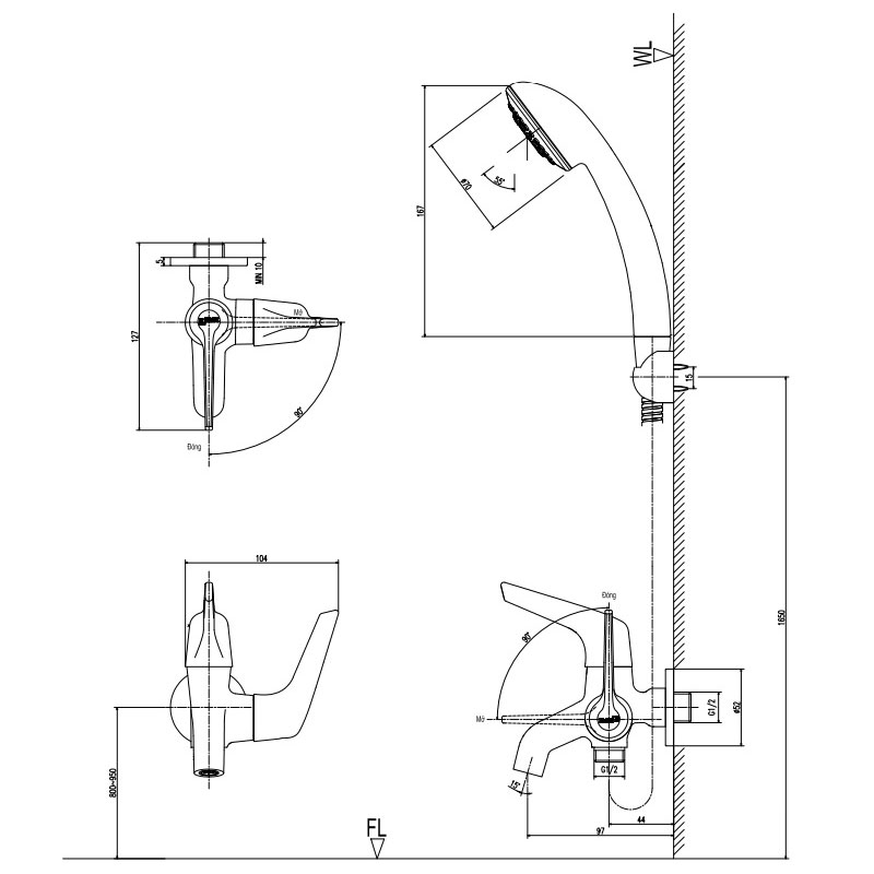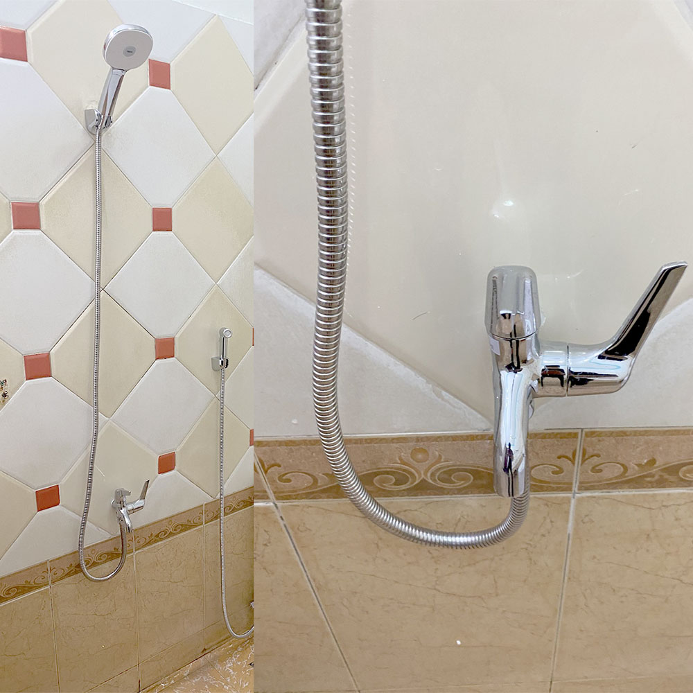 • 2 đường nước: gắn tay sen và vòi xả bồn