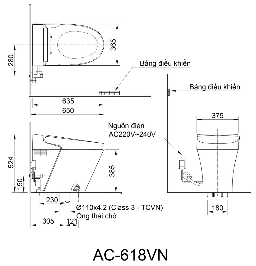Bản vẽ kỹ thuật bàn cầu INAX cảm ứng Satis S AC-618VN