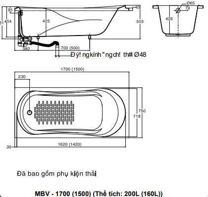 | Chiều Dài Bồn Tắm | 1m7 |