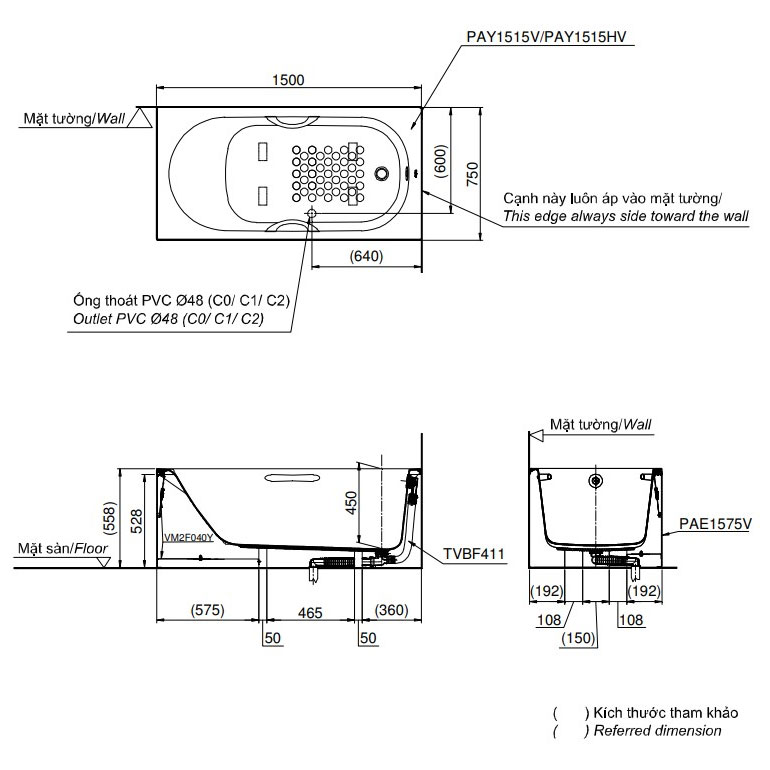 Bản vẽ kỹ thuật bồn tắm TOTO PAY1515HVC