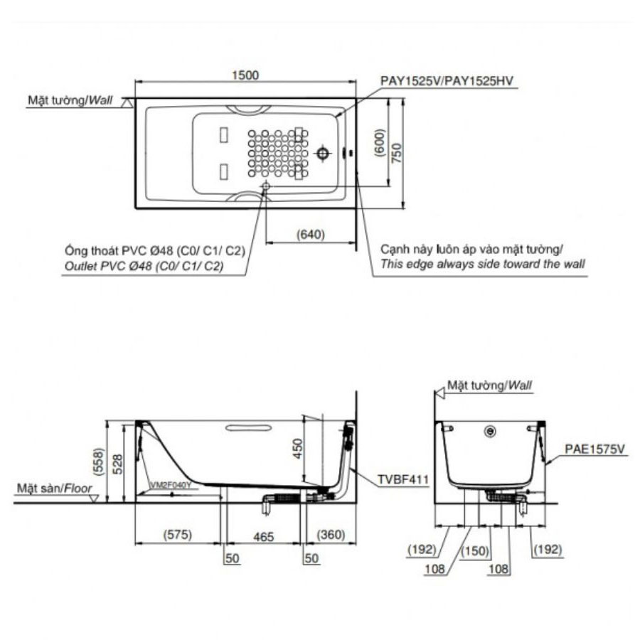 Bản Vẽ Kỹ Thuật Bồn Tắm TOTO PAY 1525 HVC