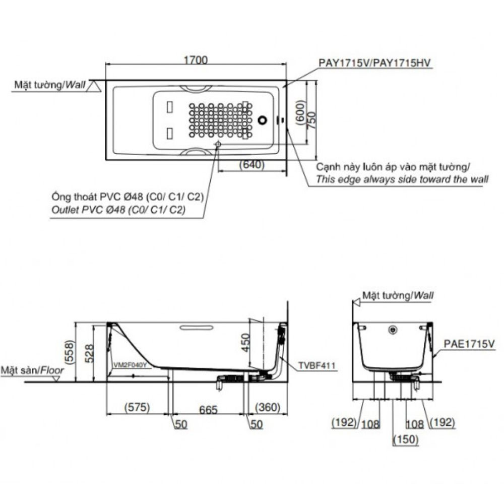 Bản vẽ kỹ thuật bồn tắm TOTO PAY1715VC