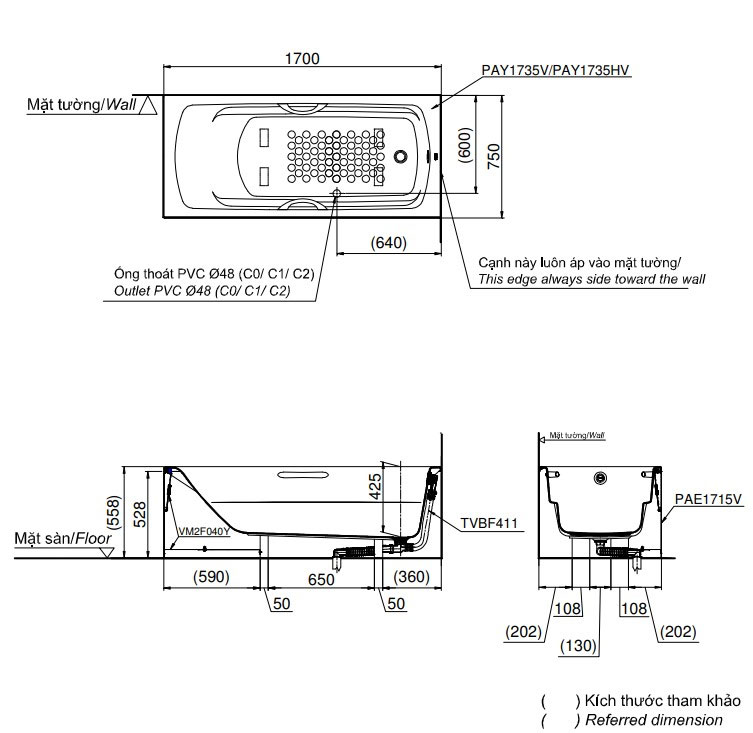 Bản vẽ kỹ thuật bồn tắm TOTO PAY1735HVC