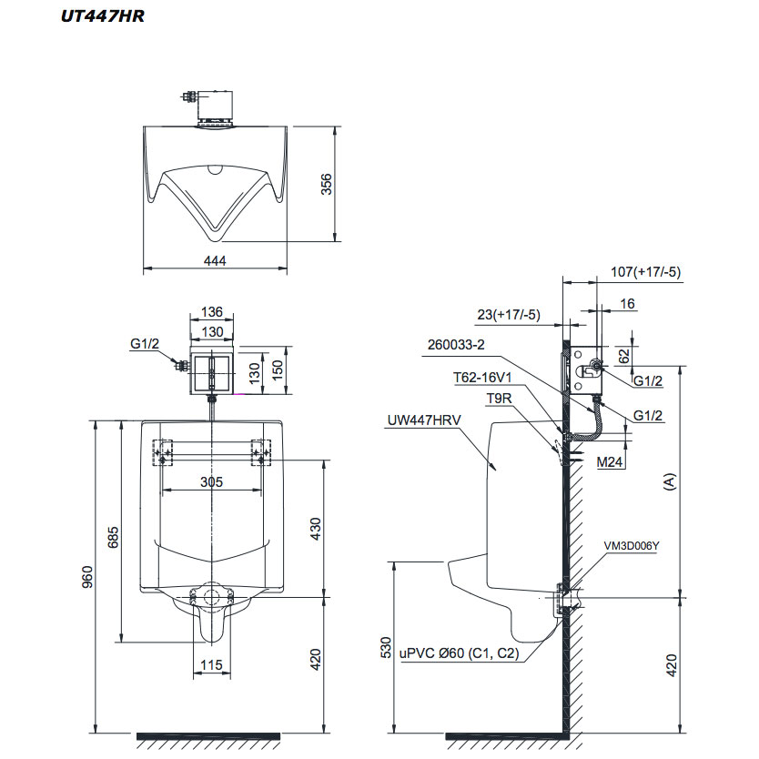 Thông tin của sản phẩm bồn tiểu TOTO UT447HR