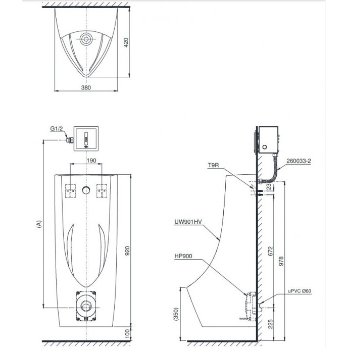 Bản vẽ kỹ thuật bồn tiểu nam TOTO UT901H