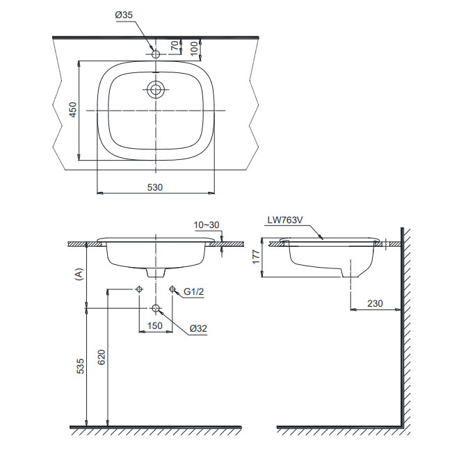 Bản vẽ kỹ thuật chậu rửa Lavabo TOTO dương vành L763 (LT763)