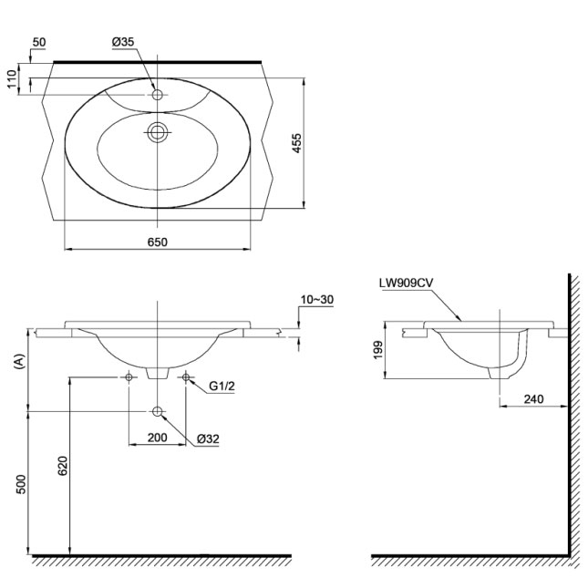 Bản vẽ kỹ thuật chậu rửa Lavabo TOTO dương vành L909C